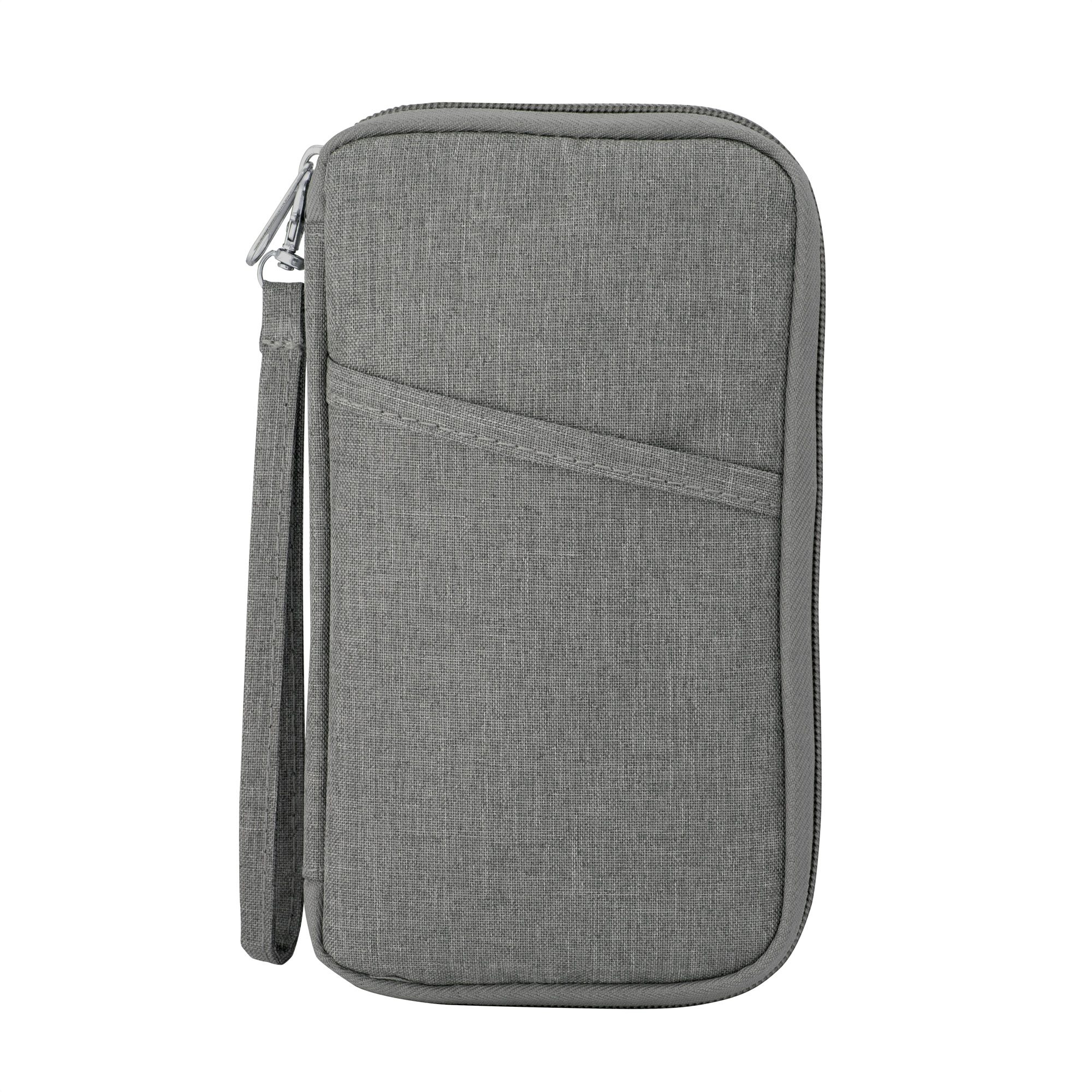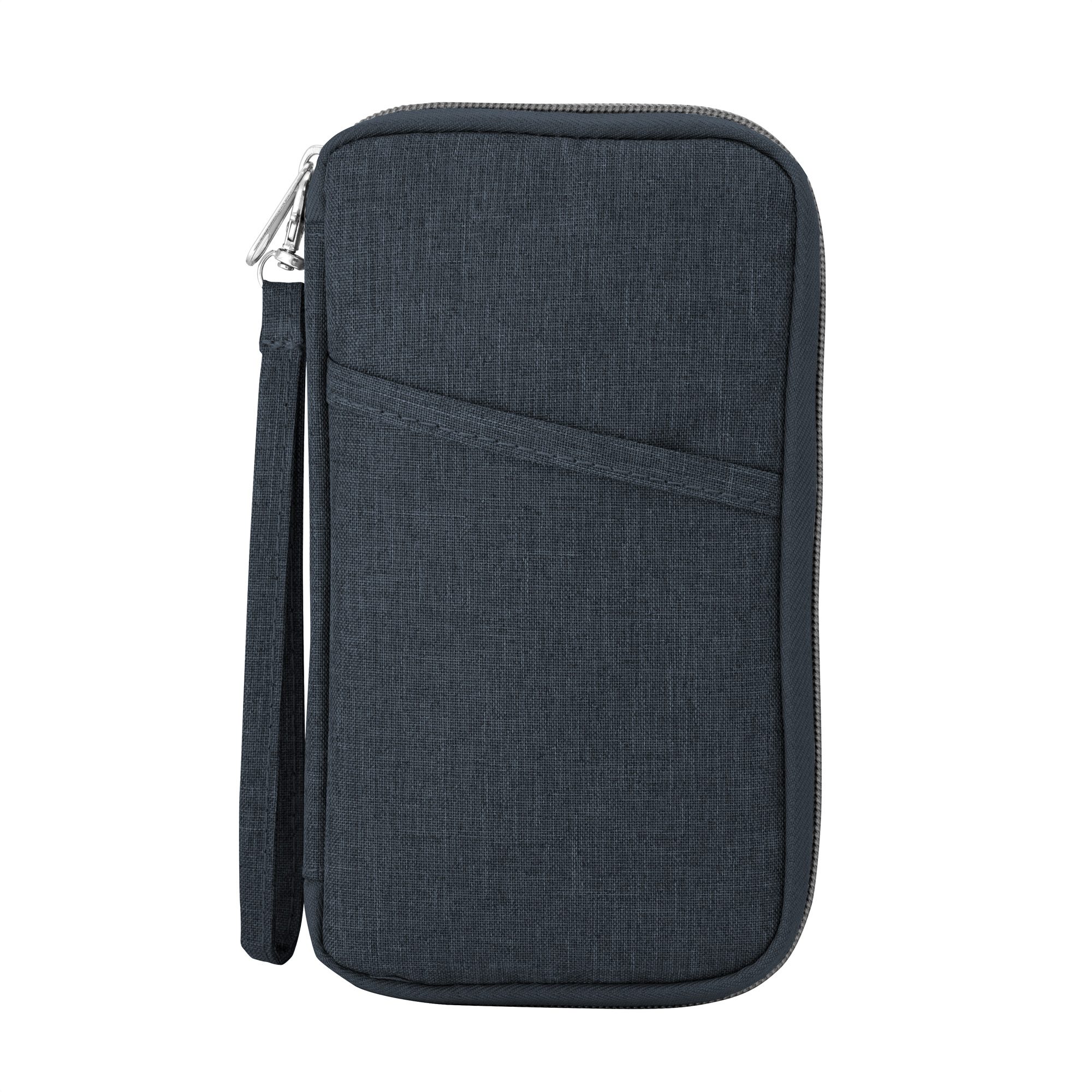 Compacta y con Múltiples CompartimentosBilletera portadocumentos. Estructura acolchada con cierre perimetral y un bolsillo al frente. Bolsillos internos de red de ambos lados con múltiples espacios organizadores y un bolsillo con cierre. Correa de poliéster desmontable con mosquetón. Tirador de cierre metálico.Medidas: 11 x 20 x 2 cm.