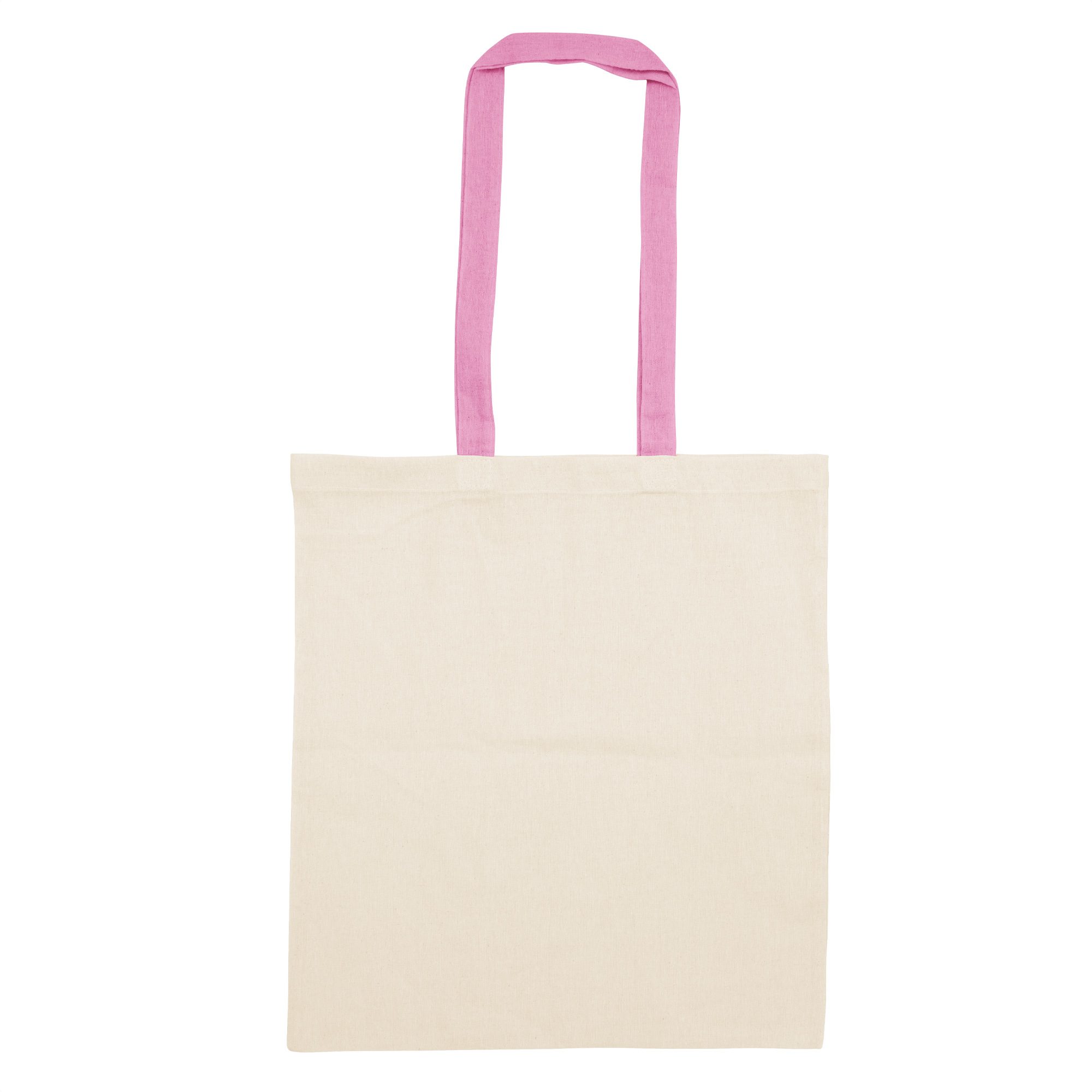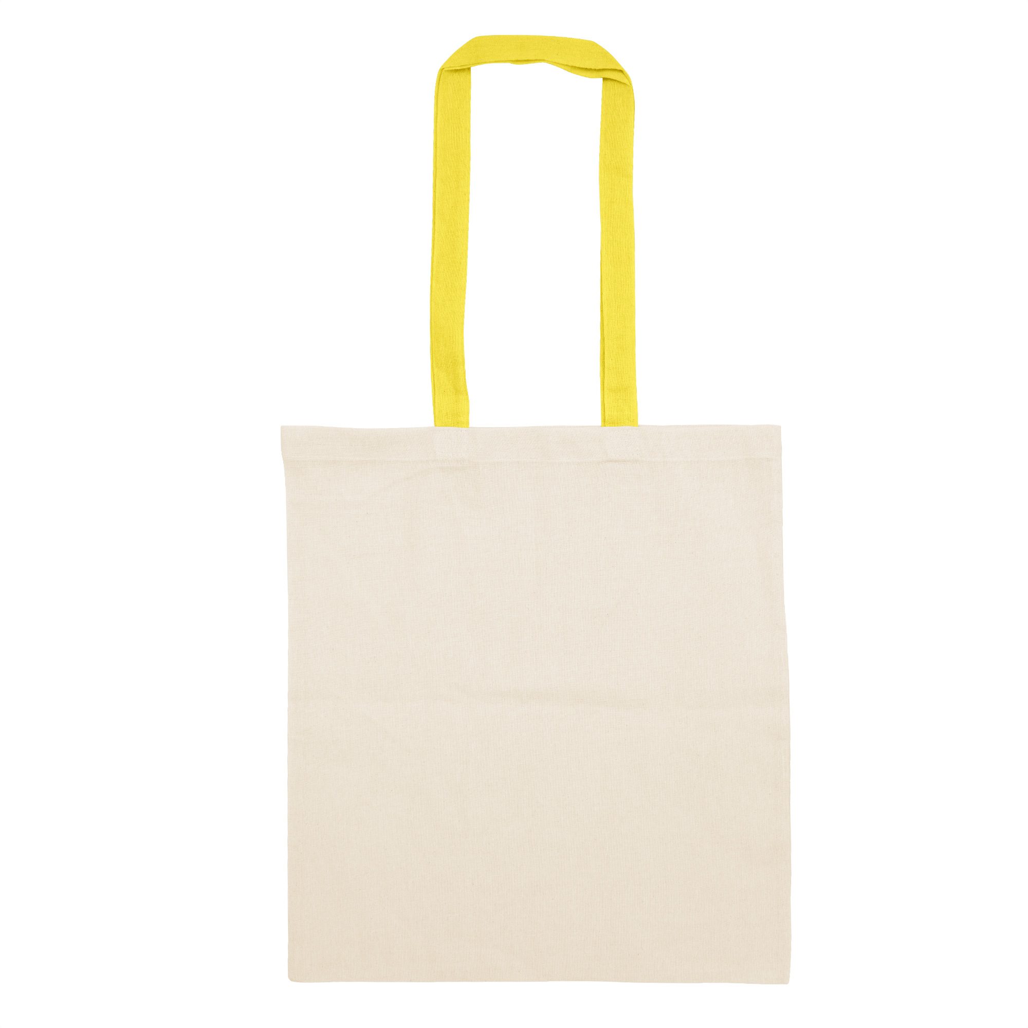 Estilo en tus compras.Bolsa reutilizable color natural con manijas de diferentes colores. Manijas cosidas de 70cm x 2,5 cm.Medidas: 38 x 42 cm.