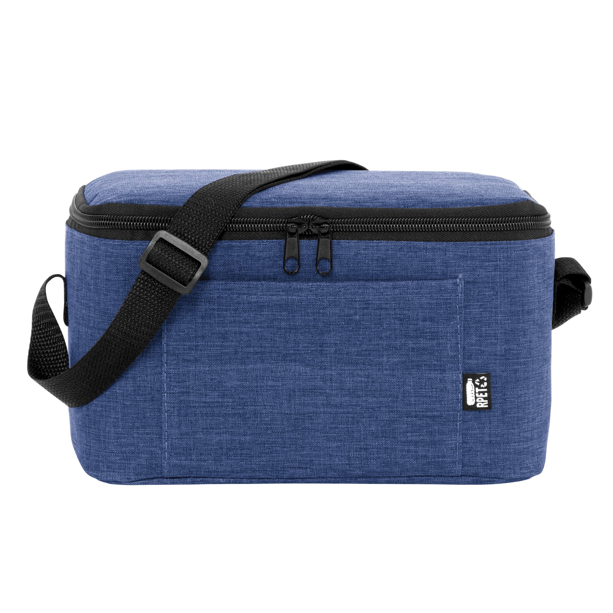 Compacto, práctico y siempre listoBolso térmico. Cierre superior bidireccional. Correa regulable con hebillas plásticas. Bolsillo frontal. Capacidad ideal para transportar hasta 6 latas.Medidas: 26 x 16 x 14 cm.