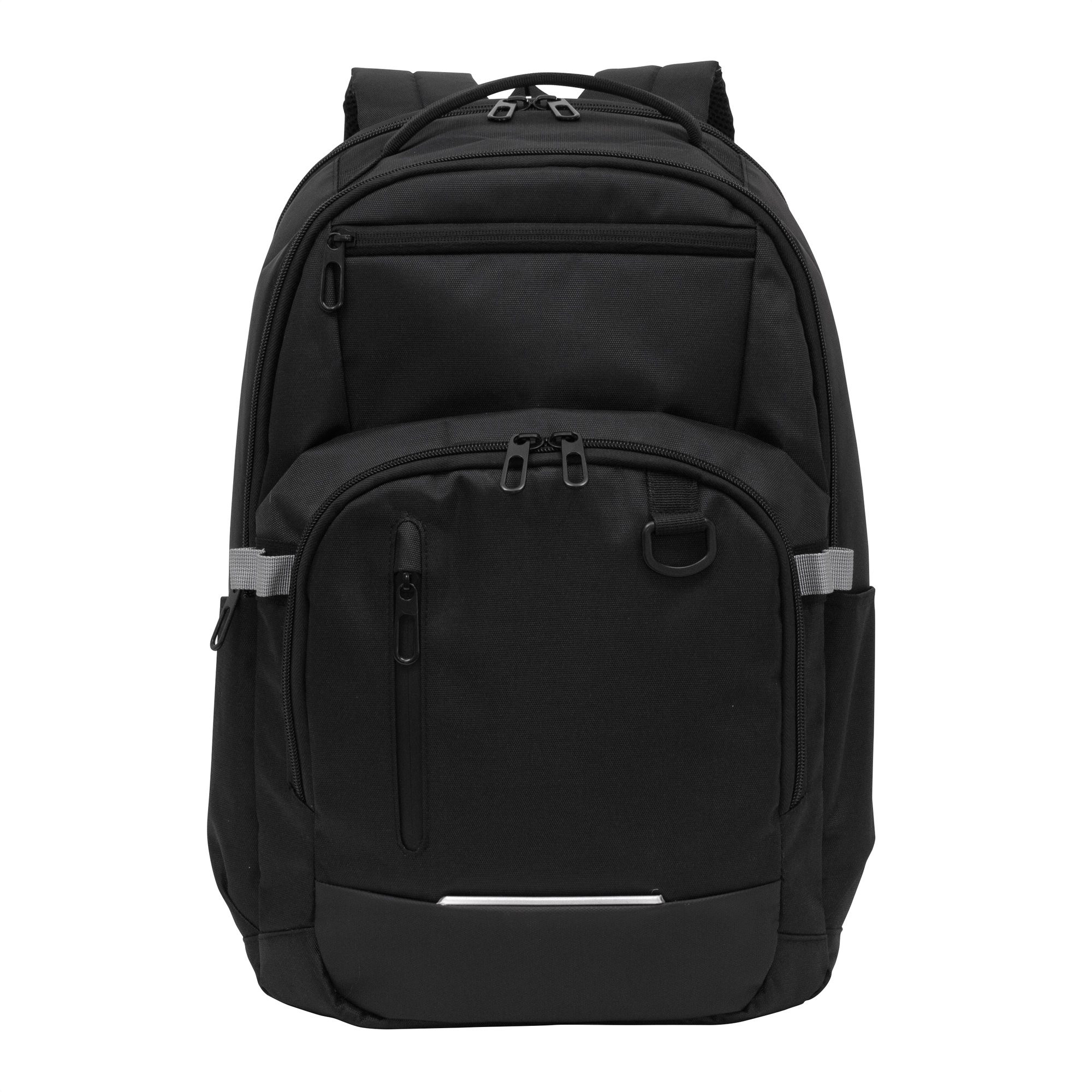 Estilo y funcionalidad en cada viaje.Mochila portanotebook de hasta 16 pulgadas. Cuenta con tres compartimentos: Compartimento posterior con bolsillo acolchado portanotebook con cierre de velcro y bolsillo plano. Amplio compartimento principal con bolsillo externo con cierre horizontal afelpado portagafas. Compartimento frontal con múltiples bolsillos para accesorios y mosquetón plástico portallaves en su interior, exterior con detalle en poliuretano y ribete reflectante, cierre impermeable vertical y gancho porta accesorios. Dos bolsillos laterales portabotellas o accesorios. Asa superior reforzada. Correas ajustables y respaldo acolchados. Tira para sujetar la mochila en la manija extensible de un equipaje de mano. Tiradores de cierres metálicos.Medidas: 30 x 46 x 19 cm.