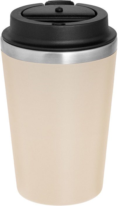 Disfruta de tus bebidas sin derrames y sin preocupaciones.Mug doble pared. Interior de acero inoxidable 304 y exterior de polipropileno con acabado mate. Tapa de polipropileno con anillo de silicona y seguro antiderrame. Base antideslizante. Medidas: Ø 8,9 cm x 15 cm.