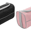 22 x 10 x 12 cm. Poliéster 300D bicolor. Necessaire con tapa. Organizador con dos bolsillos internos de red elastizados, tapa acolchada con cierre plástico color gris y asa lateral de tela color gris para transportar.