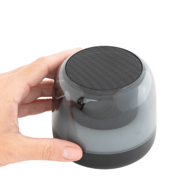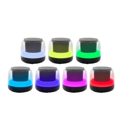 Sonido envolvente y luces vibrantes.Parlante Bluetooth estéreo con tarjeta TF y radio. ABS transparente con malla metálica en la parte superior. Led que cambia entre 7 colores y 7 modos de luz para elegir. Potencia 5W. Frecuencia 100HZ – 20K HZ. Versión Bluetooth: 5.3. Capacidad de la batería: 800 mAh. Cable de carga y conexión USB-C en color negro. Medidas: Ø 9,4 cm x 8,2 cm.