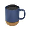 Práctica y elegante.Taza con tapa. Tapa plástica a presión color negro con anillo de silicona. Base de corcho. Pintura con acabado mate. Producto apto para microondas siempre retirando la base de corcho. Medidas: 11,8 x 9,3 x 11,5 cm.