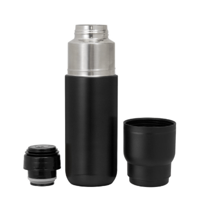 Fusiona el diseño compacto multiuso y el rendimiento prolongado.Termo con taza. Termo Doble pared sellado al vacío. Interior en acero 304 y exterior en acero 201. Tapa y taza plásticas a rosca color negro. Tapón con apertura y cierre a presión. Mantiene por más de 12 hs la temperatura de las bebidas calientes y 24 hs de las bebidas frías. Medidas: Ø 7,2 x 24 cm