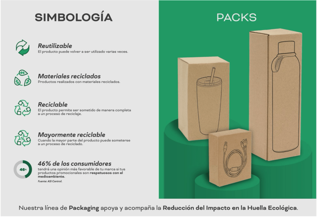 En nuestro catálogo verás íconos claros y universales que indican las características de cada empaque: