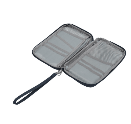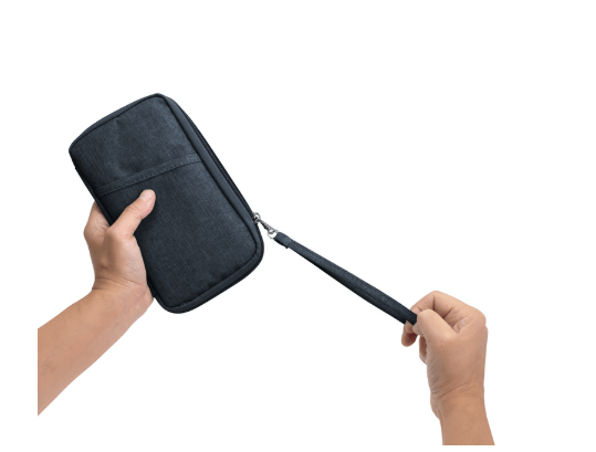 Compacta y con Múltiples CompartimentosBilletera portadocumentos. Estructura acolchada con cierre perimetral y un bolsillo al frente. Bolsillos internos de red de ambos lados con múltiples espacios organizadores y un bolsillo con cierre. Correa de poliéster desmontable con mosquetón. Tirador de cierre metálico.Medidas: 11 x 20 x 2 cm.