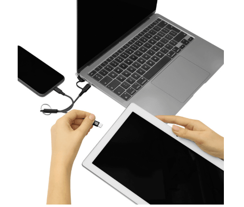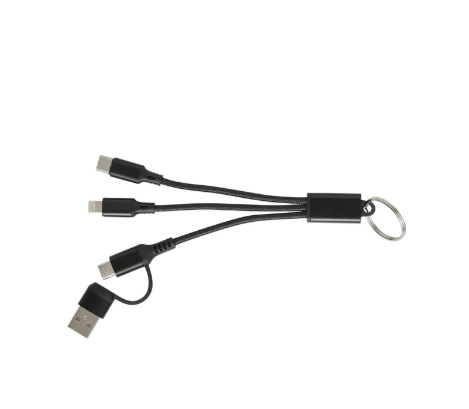 Todo lo que necesitas al alcance de tu manoCable de carga con llavero. Entrada: 2 en 1 (USB + USB tipo C). Salida: USB tipo C + lightning.Medidas: 15,5 cm.