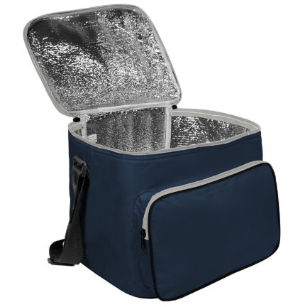28 x 25 x 25 cm.. Capacidad 17,5 litros. Poliéster 420D. Interior recubierto de aluminio. Exterior con bolsillo y cierre que permite guardar pequeños objetos. Tira con regulador de tamaño para poderla transportar cómodamente.