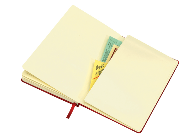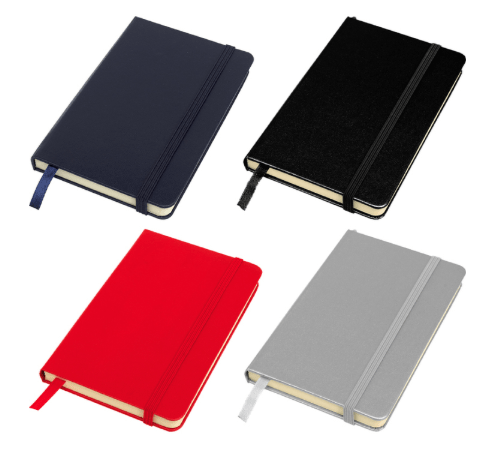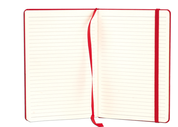 21 x 14 x 1,5 cm Cartón recubierto en poliuretano. 80 hojas rayadas.160 páginas.Separador de hojas en tela. Cierre con banda elástica. Bolsillo interior en la parte trasera de la libreta.