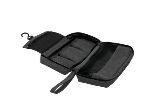 Organiza tu viaje con estilo Y practicidad.Necessaire colgante. Compartimento principal con cierre y asa de tela para transportar. Interior: compartimento superior rebatible con gancho para colgar y bolsillo de red con cierre, compartimento central con 3 bolsillos y amplio compartimento inferior con ventana de red y cierre. Medidas: 25 x 7,5 x 13 cm (cerrado) y 25 x 7,5 x 51 cm (abierto).