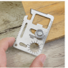 Prepárate para cualquier situación.Tarjeta multiherramienta de supervivencia portátil. Concentra 11 funciones en 1: abrelatas, cuchillo, destornillador plano, regla, abridor de botellas, llave inglesa de 4 posiciones, llave mariposa, llave inglesa de 2 posiciones, calibre de ángulos / indicador auxiliar de dirección para navegación / brújula auxiliar, sierra y orificio para cordón o llavero.Medidas: 7 x 4,5 x 1,7 cm.
