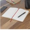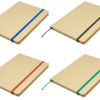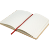 21 x 14 cm (A5). Cartón y Papel.. Libreta. Tapa en papel kraft. Interior 80 hojas rayadas en papel de 70 g. Cinta señaladora y cierre elástico del mismo color.